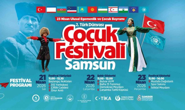 Dokuz farklı ülkeden toplam 113 katılımcının yer alacağı 2. Samsun Türk Dünyası Çocuk Festivali, çocukların dostluk köprüleri kurduğu ve 23 Nisan coşkusunun hep birlikte yaşanacağı anlamlı bir organizasyon olarak dikkat çekiyor. Festival programı, 21 Nisan Salı günü gerçekleştirilecek festival yürüyüşü ile başlayacak. Saat 11.00'de başlayacak yürüyüşte çocuklar kortej halinde Çiftlik Caddesi üzerinden ilerleyerek Onur Anıtı'na ulaşacak. Birbirinden güzel görüntülere sahne olması beklenen yürüyüşün ardından Onur Anıtı önünde protokol konuşmaları gerçekleştirilecek. Daha sonra farklı ülkelerden gelen ekipler sahne alarak kendi kültürlerini yansıtan dans, müzik ve halk oyunları gösterilerini sunacak.