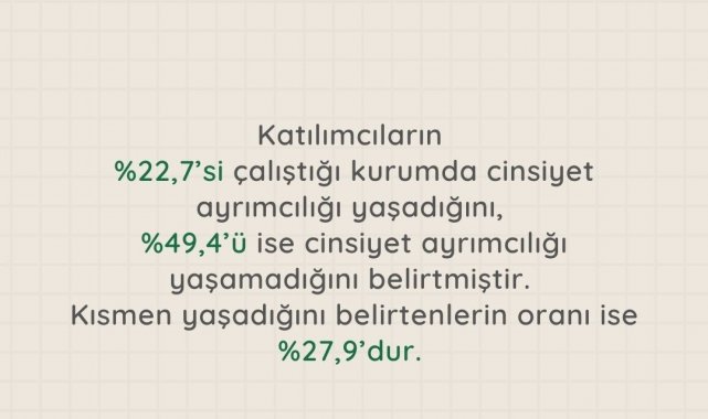 Kadın çalışanların cinsiyet ayrımcılığı yaşadığını vurgulandığı ankette, şunlar kaydedildi: