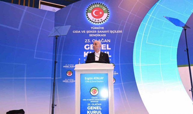TÜRK-İŞ Genel Başkanı Ergün Atalay, konfederasyona bağlı ŞEKER-İŞ sendikasının 23'üncü Olağan Genel Kurulu'na katıldı. ŞEKER-İŞ sendikasının tarihinin ve şeker işçilerinin çalışma hayatının anlatıldığı programda daha sonra kongre üye seçimi yapıldı. TÜRK-İŞ Genel Başkanı Atalay, şeker fabrikalarının Türkiye'nin en önemli kurumlarından biri olduğunu belirterek, "Kafanızı kaldırıp baktığınız zaman Erciş'te, Ağrı'da, Trakya'da, Ege'de, İç Anadolu'da, hemen hemen Türkiye'nin her bölgesinde şeker fabrikaları var. Bu ülkeyi kuranlar, o dönemde bu fabrikaları o bölgelerde işçi çalışsın, üretim olsun, ülke bundan istifade etsin niyetiyle kurmuşlar" dedi.