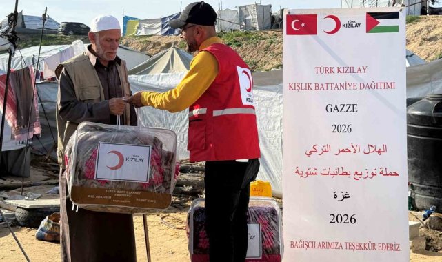 Türk Kızılay, Gazze'de soğuk hava şartlarından korunmaları amacıyla 2 bin aileye kışlık battaniye desteği sağladı.