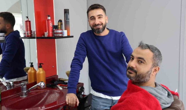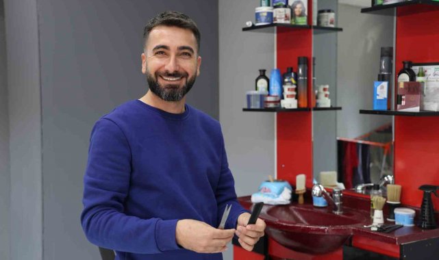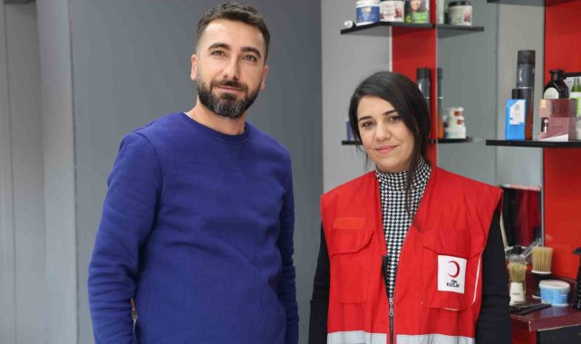 Türk Kızılay'ın esnafa yönelik yaptığı proje sayesinde yeniden iş yeri sahibi olan berber Yusuf Mıdık, mesleğine devam ederek hayata tutunmaya devam ediyor.