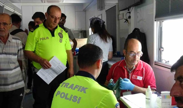 Samsun İl Emniyet Müdürlüğü'ne bağlı polisler, "Birbirimize Candan Bağlıyız, Hedef 1919 Kan Bağışı Kampanyası" kapsamında bağışta bulundular.