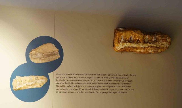 Mosasaurus hoffmanni, ilk kez 1780 yılında Belçika'da bulunduğunu anlatan Tunoğlu, "Okyanusların ve denizlerin en iri ve en büyük canlısı, dinozorlarla kıyaslanıyor. Bu canlılar denizlerdeki balıklarla, yengeçlerle besleniyorlar. Bu canlılar, karasal canlılar gibi kısa dönem solunum gerçekleştiriyorlar. Mosasaurus hoffmanni, 1999 yılında 26 yıl önce Devrekani'de keşfedilmiştir. Lokalitesi de Devrekani Beyler Barajının üst savak bölgesidir. Türkiye'de ve Asya'da ilk keşiftir. Bu yani 45 milyon kilometrekarelik Asya kıtasında, Türkiye'de yapılan ilk keşiftir. Şimdiye kadar sadece Kuzey yarım kürede bulunmuş, güney yarım kürede hiç bulunmamıştır. Mosasaurus hoffmanni, bu yüzden de güney yarım kürede yapılan ilk keşiftir. Ülkemiz 6'ıncı lokalite de yer almaktadır. 65 milyon yıl öncesinde yani en geç kretase dönemi dediğimiz dönemde yaşamıştır. Yaş olarak da çok önemlidir ve Mosasaurus hoffmanni yeryüzü okyanuslarında 30 milyon yıl hüküm sürmüşlerdir. Yani 95 ila 65 milyon yıl arasında hüküm sürmüşlerdir. Dinozorlar ise 65 milyon ile 150 milyon yıllık bir yaşam periyoduna sahiptir. Şimdiye kadar bulunmuş en genç Mosasaurus hoffmannidir. Yani şimdiye kadar 7 lokalite de bulunan Mosasaurus hoffmanni fosilleri arasında en gencidir. En genç derken yani en son yok olan anlamında söylüyorum. Yaşadığı dönemin okyanus ve kararlarının da en iri canlısıdır" şeklinde konuştu.