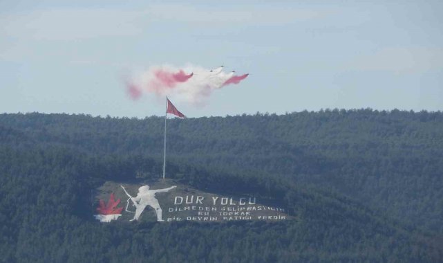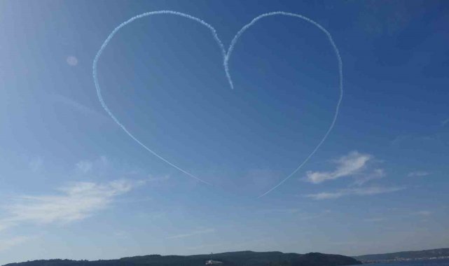 Uçuş kapsamında Çanakkale Boğazı ve Kilitbahir köyü dağında bulunan 'Dur Yolcu' yazısı üzerinde kalp çizen uçaklar vatandaşlardan büyük alkış aldı.