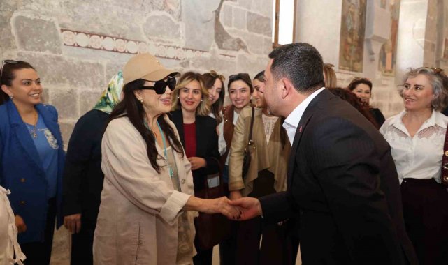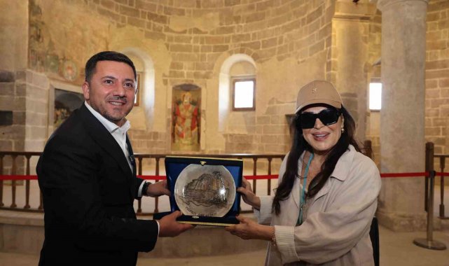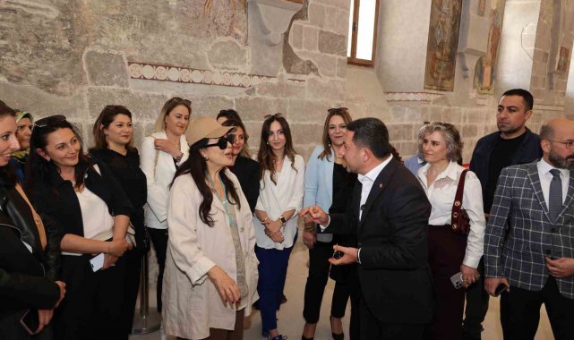 Nevşehir Belediye Başkanı Rasim Arı, ziyareti sırasında Türkan Şoray'a, Eski Meryem Ana kilisesinin tarihi hakkında bilgi verdi.
