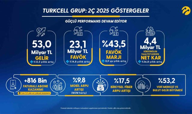 Türkiye'nin önde gelen teknoloji ve iletişim şirketlerinden Turkcell, 2025 yılının ikinci çeyreğinde de performansını sürdürdü. Şirket, söz konusu 3 aylık dönemde 816 bin yeni abone ile son 5,5 yılın en yüksek çeyreklik net faturalı mobil abone kazanımına imza attı. Toplamda 43,5 milyon abone bazına ulaşan Turkcell, mobil pazardaki açık ara liderliğini devam ettirdi.