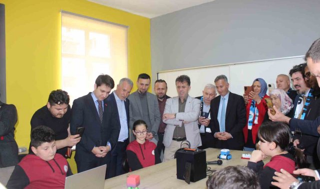 Açılışın ardından protokol üyeleri, sınıfı gezerek robotik kodlama yöntemiyle yaptıkları çalışmaları yerinde incelediler.