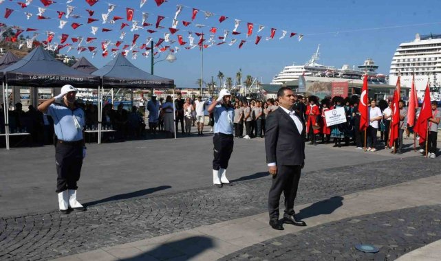 Törende şehitler için saygı duruşunda bulunuldu. Kuşadası Kaymakamı İbrahim Keklik ve Belediye Başkan Vekili Metin Uğur tarafından Atatürk büstüne çelenk konulmasıyla başlayan tören İstiklal Marşı'nın okunmasıyla devam etti.