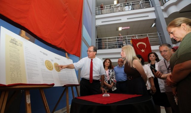 Akdeniz Üniversitesi Hastanesi'nde Türkiye Cumhuriyeti'nin ilk altın parası ve beraberindeki eserler sergilendi.