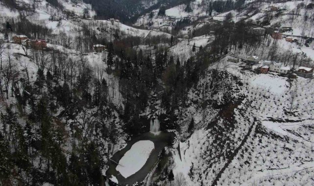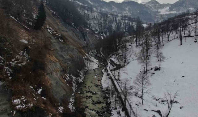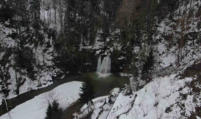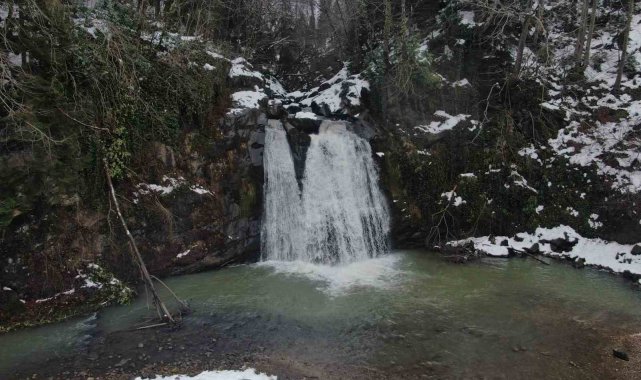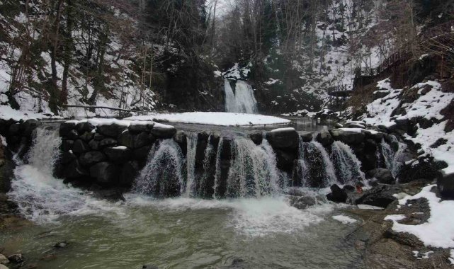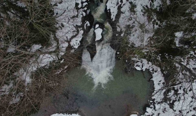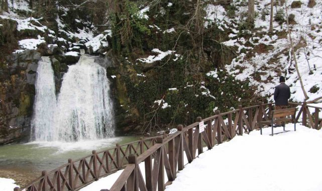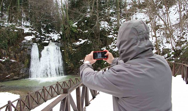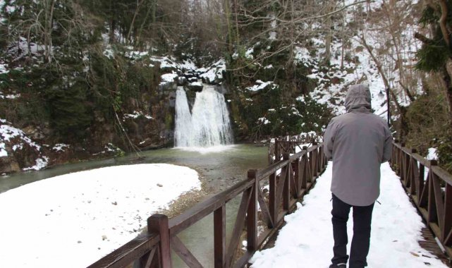 Türkiye'de eşi benzeri olmayan bin 800 metre uzunluğundaki yürüyüş yolu ve Canik Şelalesi kar yağışının ardından büründüğü beyaz görüntüsü ile görenleri hayran bırakıyor.