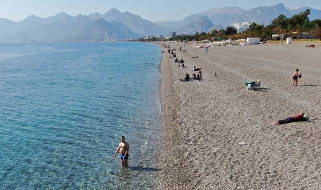 Türkiye'nin özellikle doğu illeri sert kış şartları altında karla mücadele ederken turizmin başkenti Antalya'da yazdan kalma günler yaşanıyor. Meteoroloji verilerine göre kentte hava sıcaklığı 22, deniz suyu sıcaklığı ise 22.5 derece olarak ölçüldü. Sıcak ve güneşli havayı fırsat bilen kent sakinleri ve yabancı turistler Konyaaltı Sahili'ni doldururken kasım ayında denize girmenin keyfini çıkardı. Bazı vatandaşlar ise beraberinde getirdikleri kamp masaları ile sahilde piknik yaparken, kimileri ise balık tutmayı ve yürüyüş yapmayı tercih etti.
