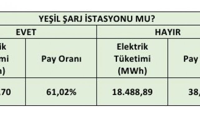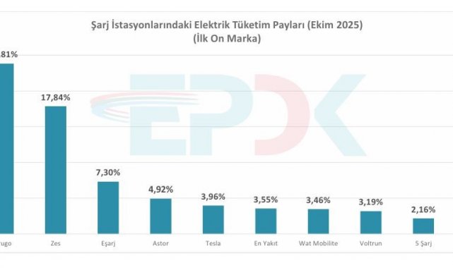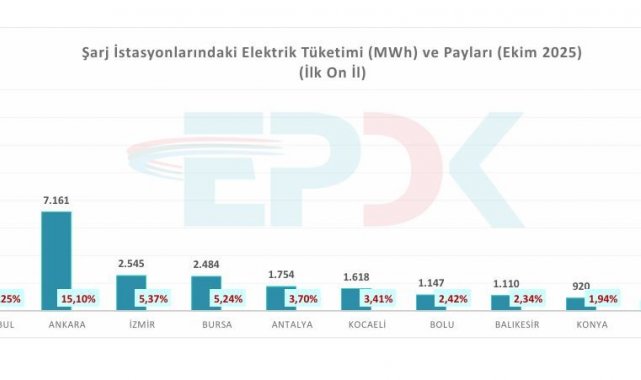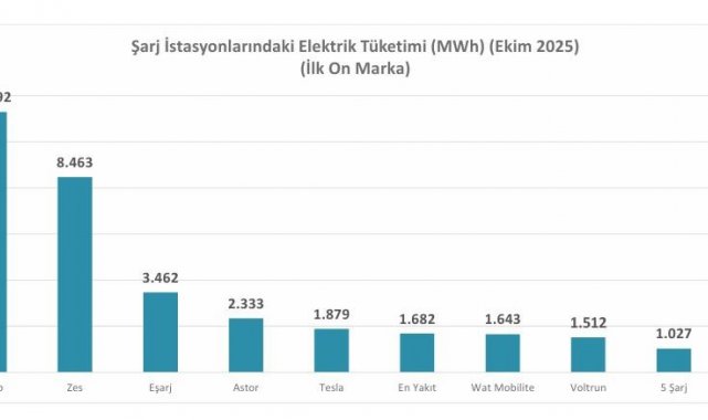 "Ekim ayı verilerine göre ülke genelinde 36 bin 361 adet şarj noktasında (soketinde) toplam 2 milyon 328 bin 190 adet şarj işlemi gerçekleştirilmiştir. Bu işlemler sonucunda 2 milyon 134 bin 864 saate karşılık gelen toplam şarj süresiyle birlikte 47 bin 429 megavat düzeyinde elektrik tüketimi gerçekleşmiştir. Gerçekleşen toplam elektrik tüketiminin yaklaşık yüzde 61'lik kısmı, kullandığı elektrik enerjisinin yüzde 100'ü yenilenebilir enerji kaynaklarından sağlandığı YEK-G (Yenilenebilir Enerji Kaynak Garanti) Belgesi ile belgelendirilen yeşil şarj istasyonlarında gerçekleştirilmiştir. Ekim 2025'te şarj istasyonlarında en yüksek elektrik tüketimi 14 bin 438 megavat ile İstanbul'da gerçekleşti. İstanbul'u Ankara, İzmir ve Bursa takip ederken, toplam tüketim içinde en yüksek payı da yüzde 30,25 ile İstanbul aldı. Markalar arasında en yüksek elektrik tüketimi 11 bin 292 megavat ile Trugo tarafından yapılırken, onu 8 bin 463 megavat ile Zes izledi. Eşarj, Astor ve Tesla ise tüketim sıralamasında ilk beş marka içinde yer aldı."