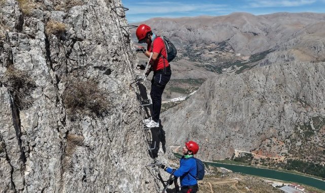 Türkiye'de tek Kemaliye'de bulunan "Via Ferrata" parkuru adrenalin tutkunlarının rotası oldu