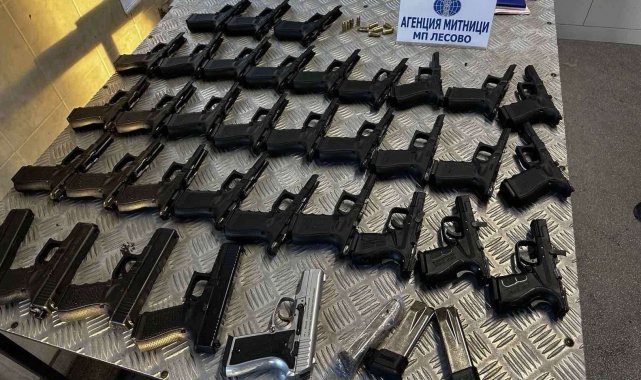 Türkiye gümrüğünden çıkıp Bulgaristan Lesovo Sınır Kapısı'na giriş yapan bir Türk vatandaşının kullandığı Hollanda plakalı otomobil, detaylı incelemeye alındı. Yapılan kontrolde Türkiye ve Kuzey Makedonya çifte vatandaşı yolcunun sırt çantasında 27 tabanca, 10 mermi ve 3 şarjör ile suikastlarda kullanılan 3 adet çakmak tipi tabanca bulunduğu tespit edildi. Gümrük yetkilileri tarafından yapılan incelemede, yakalanan silahlardan 5 tabancanın tamamen işlevsel olduğu, diğer tabancaların ise sürgülerinin eksik olduğu belirlendi.