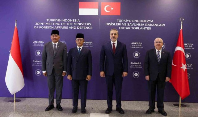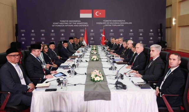 Dışişleri Bakanı Hakan Fidan, Milli Savunma Bakanı Yaşar Güler, Endonezya Dışişleri Bakanı Sugiono ve Savunma Bakanı Sjafrie Sjamsoeddin'in katılımıyla Türkiye-Endonezya Dışişleri ve Savunma Bakanları Ortak Toplantısı aile fotoğrafı çekilmesinin ardından Ankara'da başladı.