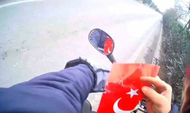 Olay, Zonguldak Milli Egemenlik Caddesi üzerinde yaşandı. 25 yıldır kentte Türkiye Gazetesi dağıtıcısı olarak görev yapan Bilal Demir (41), motosikletiyle dağıtıma çıktığı sırada yol kenarındaki çalılıkların arasına düşmüş yıpranmış bir Türk bayrağı fark etti. Yoğun trafikte duramayan Demir, bayrağı bırakmaya gönlü el vermeyince ilerideki kavşaktan geri dönüş yaptı. Metrelerce yolu geri gelen Demir; çalılıkların arasındaki Türk bayrağını bulunduğu yerden aldı. Demir'in bayrağı almak için geri döndüğü o anlar ise kask kamerası tarafından saniye saniye kaydedildi.