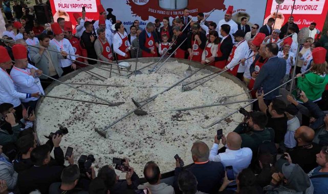 Türkiye'nin en büyük tenceresinde 6 ton pilav pişirildi