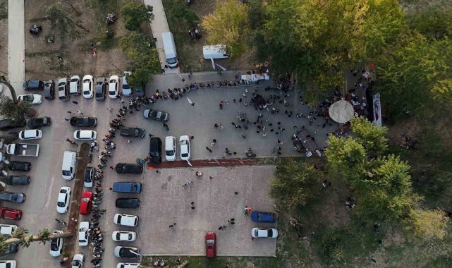 Dev tencerede pişirilen pilav, vatandaşlara ikram edildi. Vatandaşlar pilav alabilmek için uzun kuyruklar oluşturdu.