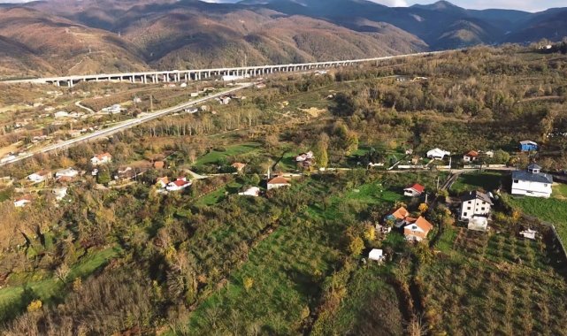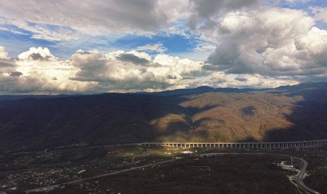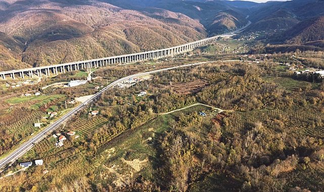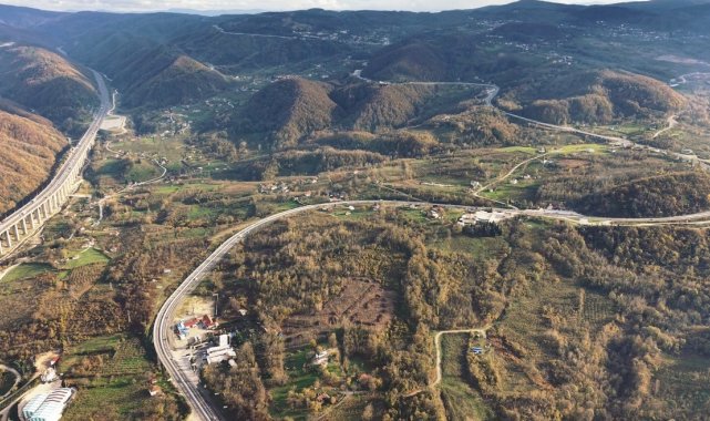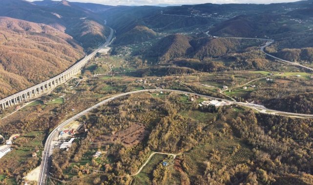 Bölgenin coğrafi zorluklarını aşmak için inşa edilen viyadükler ve Bolu Dağı Tüneli'ne uzanan otoyol hattı ile D-100 devlet yolu aynı karede yer aldı.
