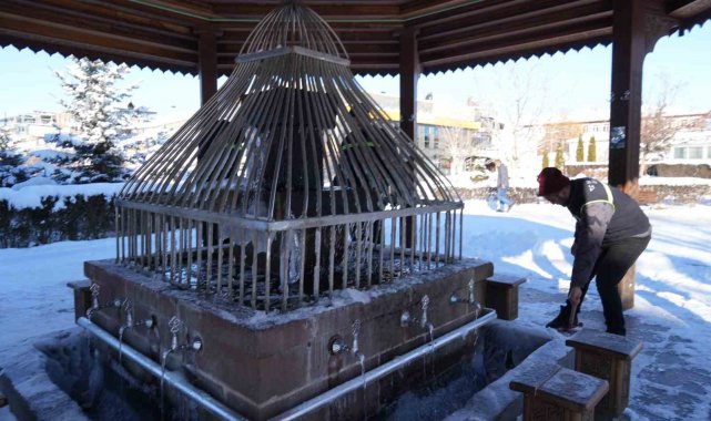 Erzurum'da soğuk yüzünü iyiden iyiye gösterdi. Kar yağışı sonrası etkili olan soğuk hava yaşamı da olumsuz etkiliyor. Erzurum kent merkezinde soğuktan çeşmeler ve şadırvanlar buz tuttu. Kapalı otobüs duraklarının camları buzla kapandı, belediye ekipleri 24 saat mücadelesini sürdürüyor.