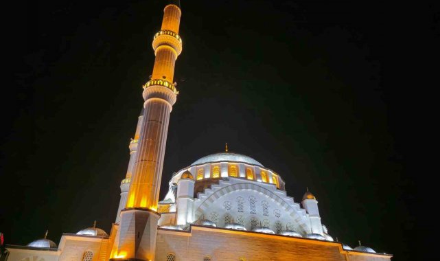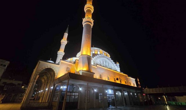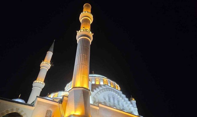 Ramazan ayında ibadet için yoğun ilgi gören cami, gece aydınlatmalı ile de hayran bırakıyor.