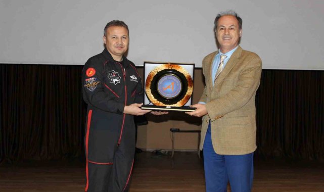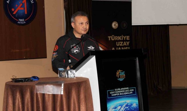 Türkiye'nin uzay misyonundaki ilk astronotu olan Alper Gezeravcı, etkinlikte bilimsel çalışmalar üzerine bir söyleşi gerçekleştirdi. Cumhuriyet tarihinin ilk uzay misyonuna değinen Gezeravcı, "Türkiye'nin insanlı ilk uzay misyonunu tamamlamamızdan bu yana geçen 24 aylık sürenin içerisinde Antalya'da bugün 239. şehir değişimi ile 601. programı yapıyoruz. Geçen yıl tesadüfen yine şubat ayının içerisinde, 25 Şubat'ta GÜNKAF kapsamında üniversitenizde bulundum. Bugün IAC 2026 Antalya'nın hazırlık sürecinde kampüs buluşmalarımız kapsamında tekrar burada olmaktan mutluluk duyuyorum. Bizim bu kadar kısa zaman dilimi içerisinde bu kadar fazla şehir değişimiyle, bu kadar fazla program yapma çabamızın sebebi sizlere bir lütufta bulunmak değil; bu bizim boynumuzun borcu. Çünkü Türkiye Cumhuriyeti, tarihindeki insanlı ilk uzay misyonunu bir Türk vatandaşının uzaya gidip 22 gün macera yaşaması için gerçekleştirmedi" dedi.