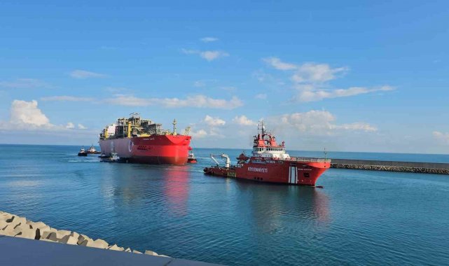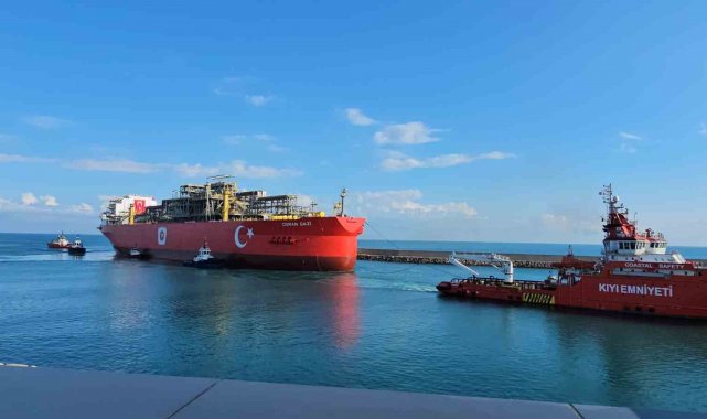 Türkiye'nin ilk yüzer doğal gaz üretim platformu (FPU) Osman Gazi, İstanbul boğazını geçtikten sonra sabah saatlerinde Filyos Limanı'na ulaştı.