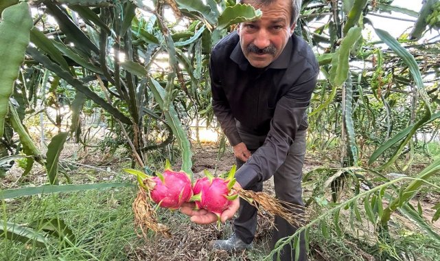 Türkiye'nin en bereketli topraklarından olan Hatay'da tarımda ürün yelpazesi her geçen gün genişlemeye devam ediyor. Kış aylarında ılıman geçen havayı fırsat bilen Arsuz ilçesi Madenli Mahallesi'nde çiftçilik yapan 59 yaşındaki Fehmi Kaba, üç yıl önce ejder meyvesi fidanı dikerek üretime başladı. Geçtiğimiz yıl bir dönüm araziden 1 tondan fazla ejder meyvesi hasat eden Kaba, hasattan memnun kalınca bu yıl 2 dönüm alana dikim gerçekleştirdi. 2 dönüme ektiği beyaz ve kırmızı ejder meyvesinde hasada başlayan Kaba, ejder meyvesinin kilogram fiyatını tarladan 180 TL'den alıcıyla buluşturuyor.