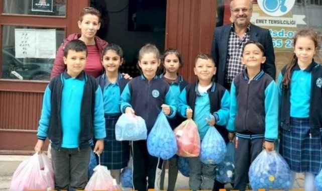 Türkiye Sakatlar Derneği Emet Temsilciliği'nin 'Mavi kapak toplama kampanyası'na Emet 3 Eylül İlkokulu öğrencileri destek verdi.