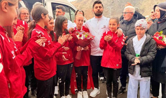 Kocaeli'de düzenlenen Karate Çocuklar Türkiye Şampiyonası'nda 44 kilogram kategorisinde Türkiye birincisi olan 14 yaşındaki Şeyma Keskin, memleketi Artvin'in Yusufeli ilçesinde büyük bir coşkuyla karşılandı.
