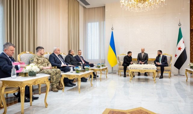 Dışişleri Bakanı Hakan Fidan, resmi ziyaret kapsamında geldiği Suriye'de temaslarına devam ederken, Türkiye, Suriye ve Ukrayna arasında üçlü görüşme düzenlendi. Görüşmeye, Bakan Fidan, Ukrayna Devlet Başkanı Vladimir Zelenskiy ve Suriye Devlet Başkanı Ahmed eş-Şara katıldı.