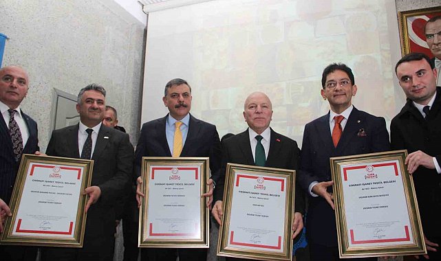 EİT 2025 Turizm Başkenti ve Avrupa 205 Kış Sporları Başkenti olan Erzurum'da, gastronomi başta olmak üzere kültürel değerlerin geleceğe taşınması için ciddi çalışmalar yapılıyor. Bunların başında özellikle son yıllarda Erzurum'a ait değerlerin coğrafi işaret alması için ciddi girişimler yapan Erzurum Ticaret Borsası geliyor. 60 coğrafi işaretli ürünle Gaziantep ve Konya'dan sonra gelen Erzurum'da, Türk Patent ve Marka Kurumu Başkanı Prof. Dr. Muhammed Zeki Durak'ın katılımıyla son olarak alınan coğrafi işaretli ürünlerin belgeleri teslim edildi. Programda birer konuşma yapan Erzurum Ticaret Borsası Başkanı Hakan Oral, Erzurum Ticaret ve Sanayi Odası Başkanı Saim Akalın, Erzurum Büyükşehir Belediye Başkanı Mehmet Sekmen ve Erzurum Valisi Mustafa Çiftçi; Erzurum'un sahip olduğu kadim tarihi ve kültürel değerleriyle turizm noktasında hak ettiği noktaya geleceğini ifade ettiler.