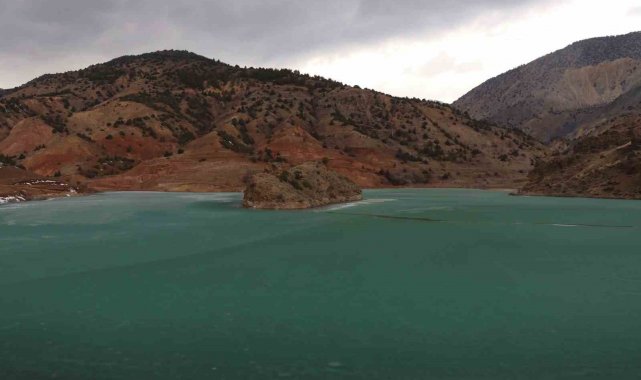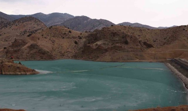 Erzurum'un Oltu ilçesi Şendurak Mahallesi'nde DSİ tarafından inşa edilen sulama göleti, turkuaz rengiyle muazzam bir doğa harikası haline dönüştü.