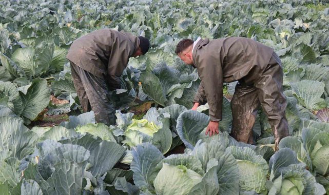 Turşuların başrol oyuncusu lahananın hasadına devam ediliyor