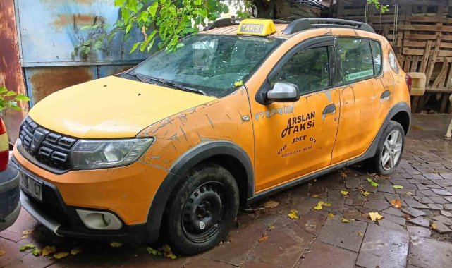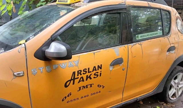 Gasp edilen taksi baba evinin bahçesine konuldu