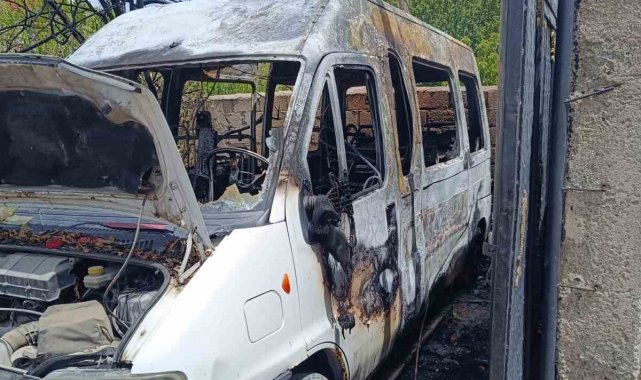 Van'ın Tuşba ilçesinde park halindeki minibüs yanarak kullanılamaz hale geldi.