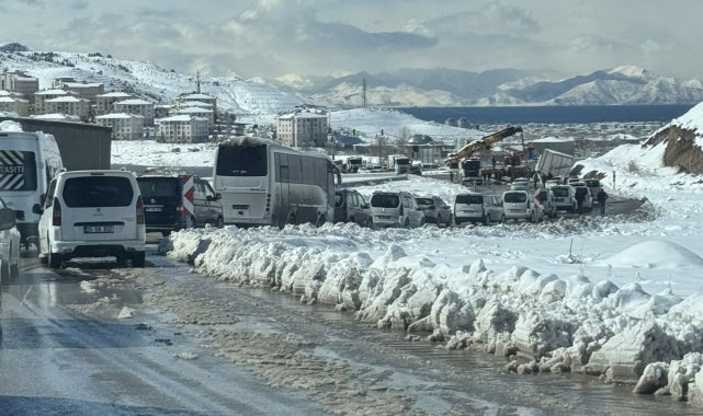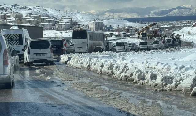 Van'ın Tuşba ilçesinde meydana gelen tır kazasında uzun araç kuyruğu oluştu.
