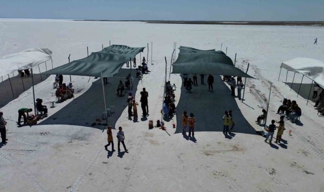 Aksaray'ın Eskil ilçesinde, 20 köy okulundan toplam 250 öğrenci, Tuz Gölü üzerinde bocce müsabakası yaptı.