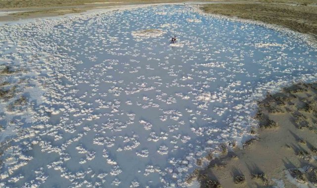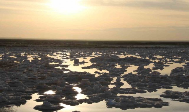 Tuz Gölü'nde sular çekildi, Pamukkale travertenlerini andırdı