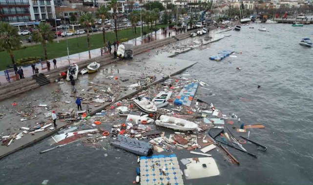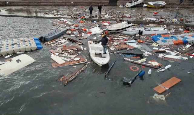 Şiddetli dalgalar nedeniyle bazı tekneler alabora olurken, bazıları parçalanarak kullanılamaz hale geldi, bazı teknelerin ise battığı öğrenildi. Sahil boyunca teknelerin birbirine çarptığı, bağlama halatlarının koptuğu ve iskelelerde hasar oluştuğu görüldü.
