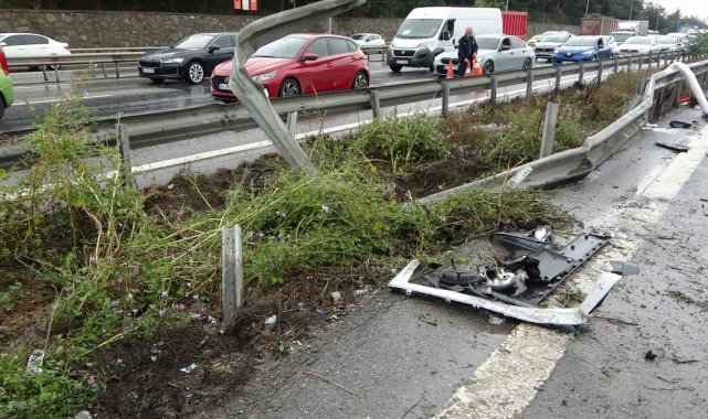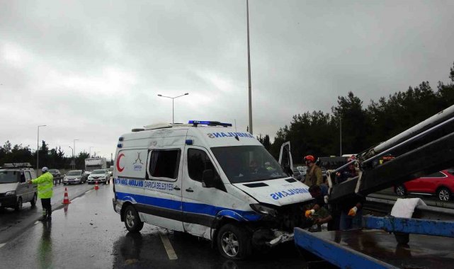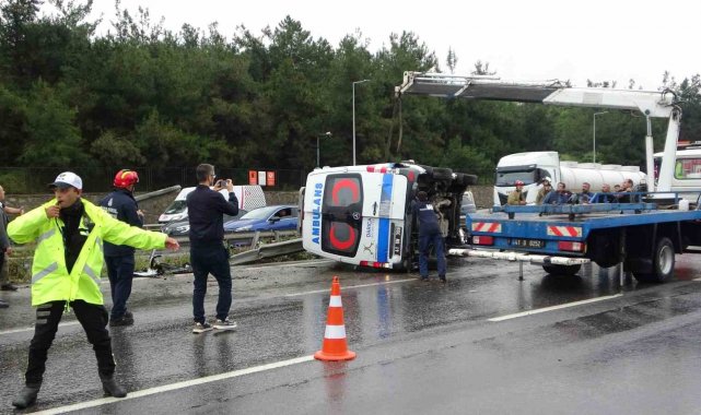Tuzla'da kontrolden çıkan hasta nakil ambulansı, bariyerlere çarparak yan yattı. Kazada araçta bulunan hamile bir kadın ve 2 sağlık personeli hafif yaralandı.