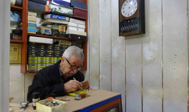 Gaziantep'te 3 metrekarelik dükkanında bir zamanların gözde meslekleri arasında yer alan saat tamirciliğini sürdüren 71 yaşındaki Nejdet Sungun, 60 yıldır zamana "ince ayar" veriyor.