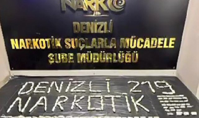 İstanbul'dan Denizli'de havayoluyla yolculuk eden yabancı yolcunun midesinden 219 paket halinde 1 kilo 329 gram uyuşturucu madde ile 90 adet uyuşturucu hap çıktı. Polis tarafından dakika dakika takip edilen uyuşturucu kuryesi ile uyuşturucuyu piyasaya sürmeye hazırlanan tacir buluşma noktasında kıskıvrak yakalandı.