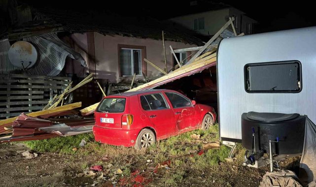 Uçan çatı, ev, karavan ve otomobilde hasara yol açtı