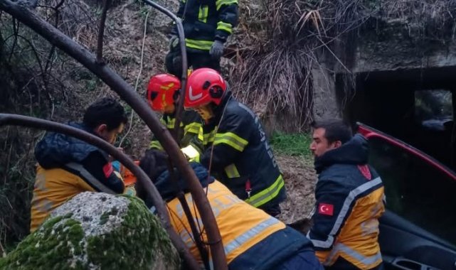 Uçuruma yuvarlanan araçta bulunan 2'si çocuk 5 kişi yaralandı