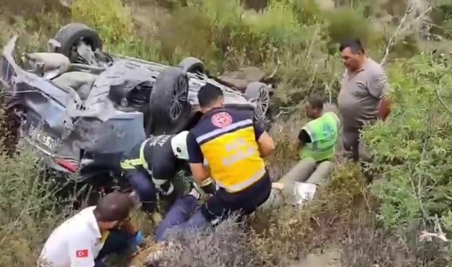 Uçuruma yuvarlanarak ters dönen otomobildeki 4 kişi yaralandı