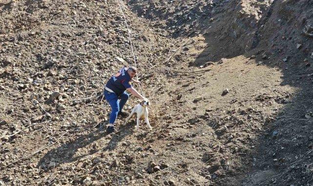 Uçurumda mahsur kalan görme engelli köpek kurtarıldı