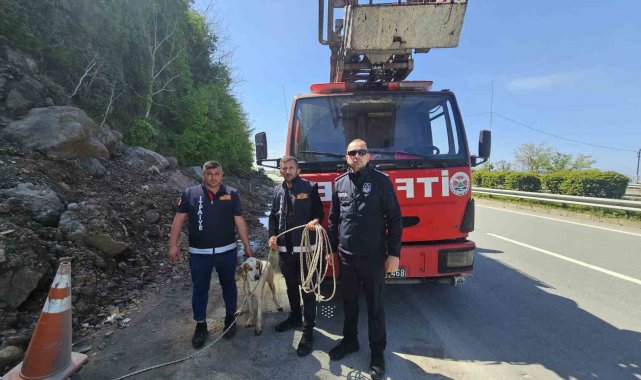 Artvin'in Arhavi ilçesinde uçurumda mahsur kalan görme engelli köpek, itfaiye ekiplerince kurtarıldı.
