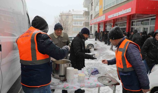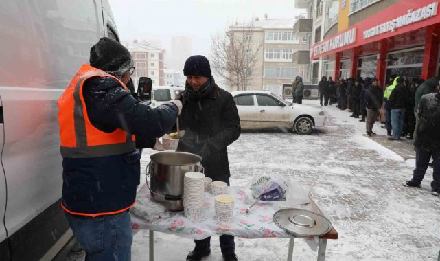 Et ve Süt Kurumu Yozgat satış mağazası önünde ucuz et almak için kuyrukta bekleyen vatandaşlara Yozgat Belediyesi tarafından sıcak çorba ikramında bulunuldu.