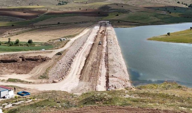Bayburt'ta yapımı devam eden, tamamlandığında 4 bin dekar zirai tarım arazisini sulayacak olan Uğrak Göleti'nde, çalışmalar sürüyor.